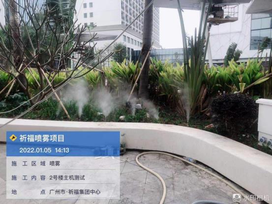 近日,由我司廣州中鵬康體設(shè)備有限公司承建的祈福新邨繽紛匯二期名望天下項目水降溫噴霧及室外園林水景設(shè)備工程通過竣工驗收,該項目水降溫噴霧工程范圍有:天橋噴霧、綠化噴霧、排水溝噴霧、地面噴霧燈、電氣控制系統(tǒng)等設(shè)備;室外園林水景工程范圍有:互動鏡面水景等設(shè)備。