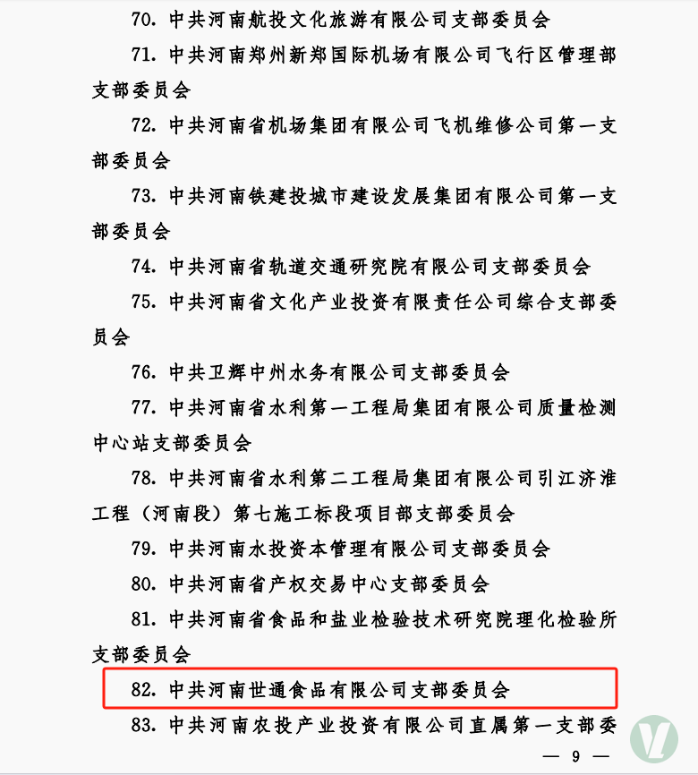 日前,省政府國資委黨委發(fā)文,對獲得省管企業(yè)“五星”黨支部進行通報表彰,集團所屬世通食品公司黨支部被授予省管企業(yè)“五星”黨支部榮譽稱號。