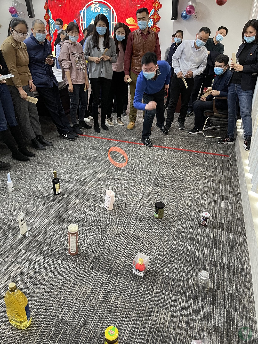 本次活動共設(shè)套圈、踢毽子、飛鏢、擲骰子等四項娛樂競技游戲,全體職工踴躍參加,在活動過程中,大家全神貫注,身手矯捷,活動現(xiàn)場氛圍歡樂,不時傳出歡聲笑語,洋溢著歡樂、和諧、喜慶的濃厚節(jié)日氛圍。為認真落實有關(guān)疫情防控通知精神,本次活動從參與人數(shù)、場地消毒、單項活動區(qū)域劃分等都進行了周密安排,要求所有參與活動人員全程佩戴口罩。